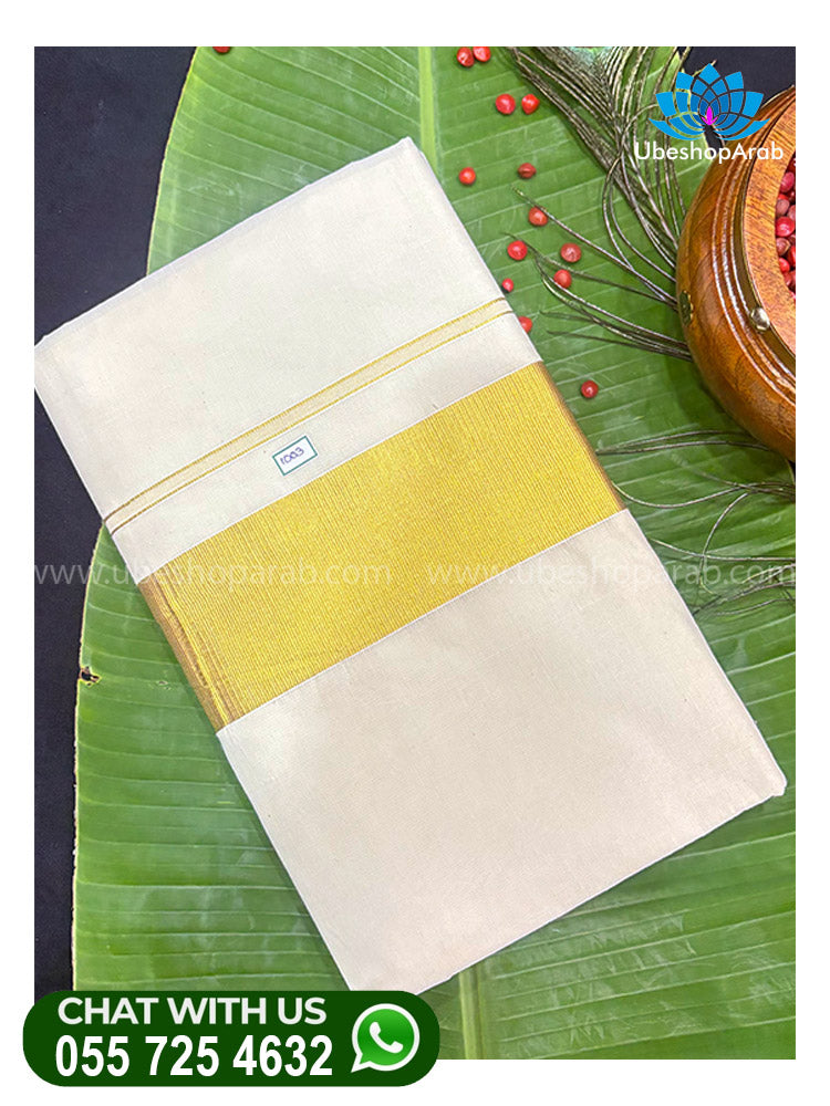 The Kerala Style Set Saree is a traditional white saree with an elegant kasavu (golden zari) border, symbolizing grace and heritage. Perfect for festive occasions like Onam and Vishu, this saree reflects Kerala’s rich cultural tradition with its simple yet regal charm.